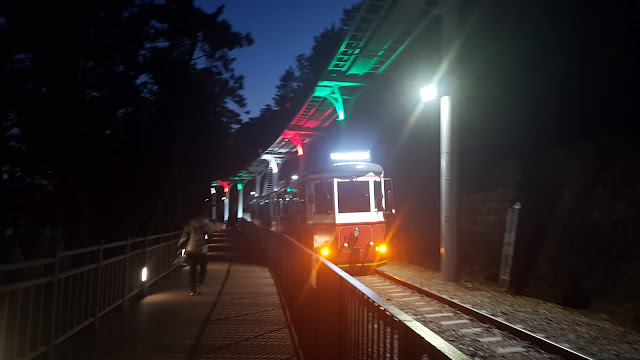 한참 걸어가고 있는데, 작은 기차가 다닌다.